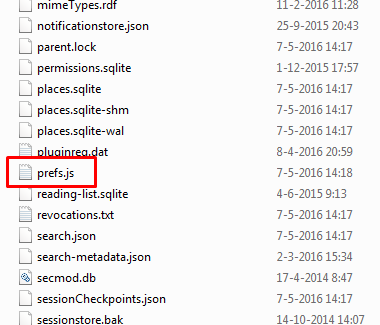Zoek het bestand pref.js en maak een kopie (bijv. door bestand aan te klikken en vervolgens Ctrl-C en Ctrl-V te doen).